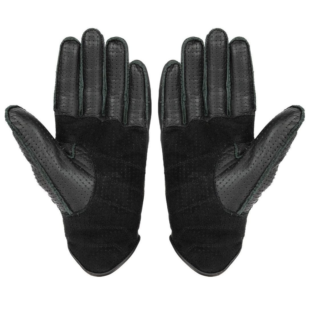 Made from perforated full-grain leather with suede palms, they provide durability and grip while allowing airflow through the perforated construction. A hook & loop wrist adjustment ensures a secure fit, while subtle debossed branding with signature stripe tape adds a refined finishing detail. Touchscreen compatibility allows you to use devices without removing your motorcycle gloves.