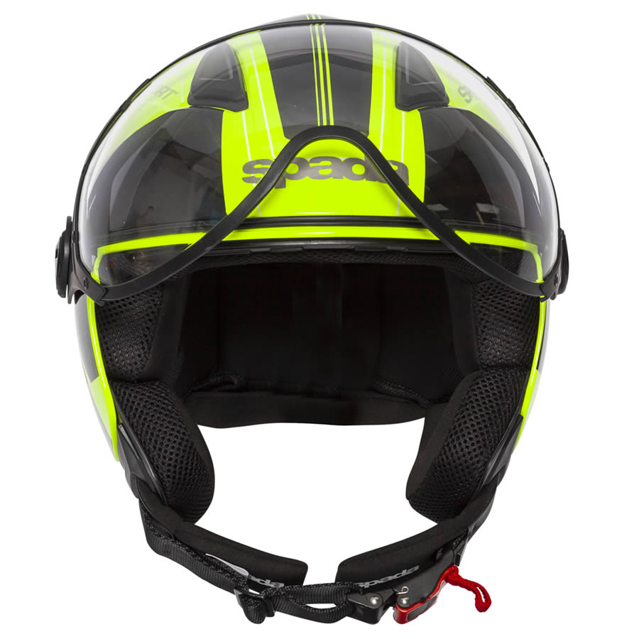 The Spada Hellion motorcycle helmet is perfect for commuters and urban riders looking to tackle the city in a lightweight shell that delivers ride after ride. A quick release chin strap makes the helmet extremely accessible.