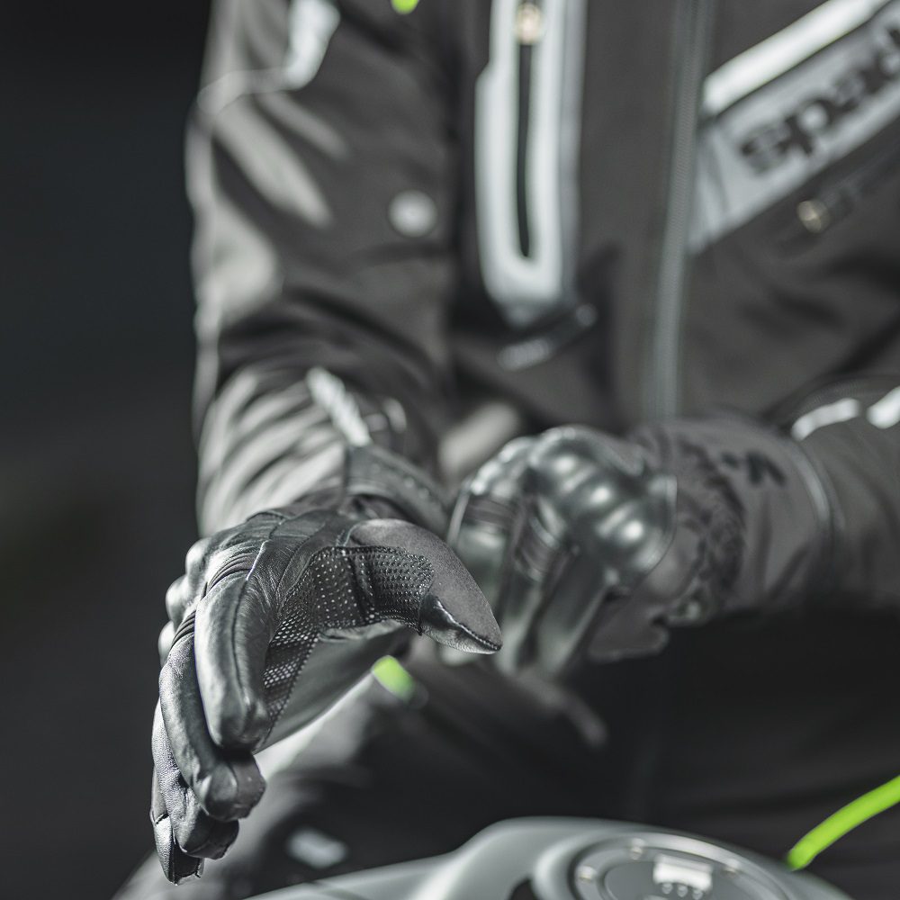 The Spada Oslo women’s leather motorcycle gloves are great for touring riders and commuters looking to stay warm, dry and comfortable no matter the weather! A mixture of goat skin leather and soft shell materials provides the best of both worlds.