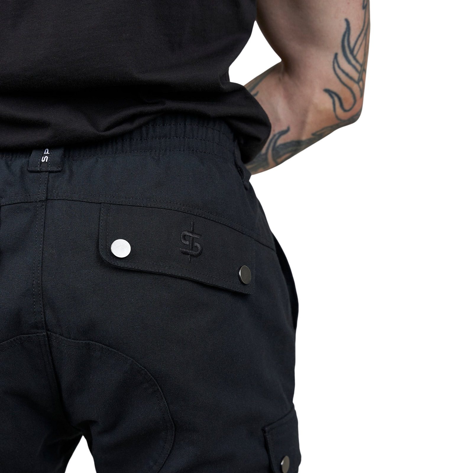 Concealed stud-fastened hip pockets for secure storage.