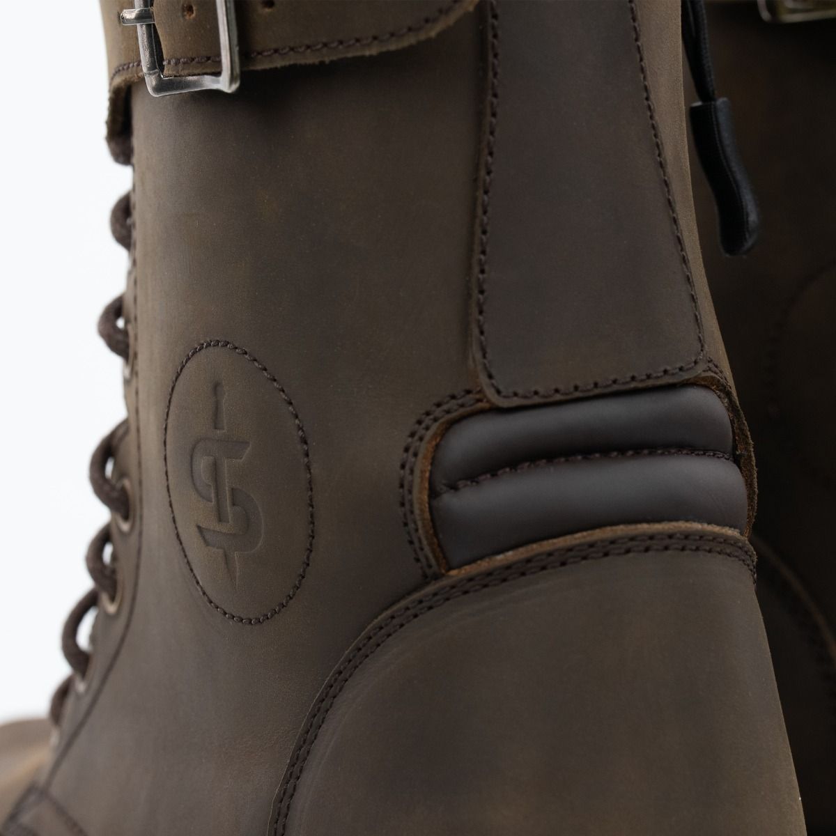 Wax-treated leather upper construction.