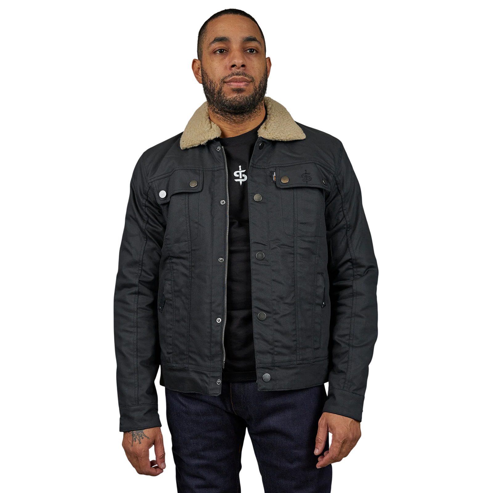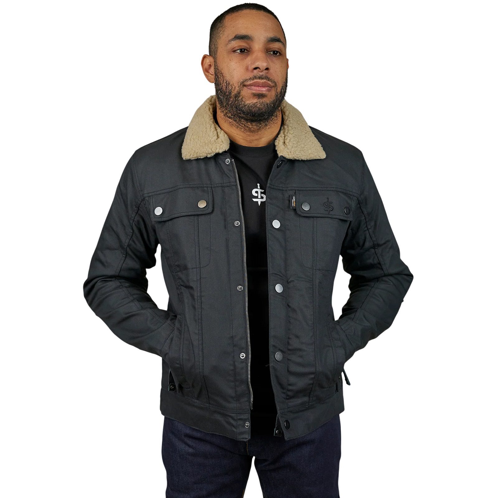 Durable Cordura infused denim outer shell with a soft Sherpa lined body and detachable collar for enhanced warmth.