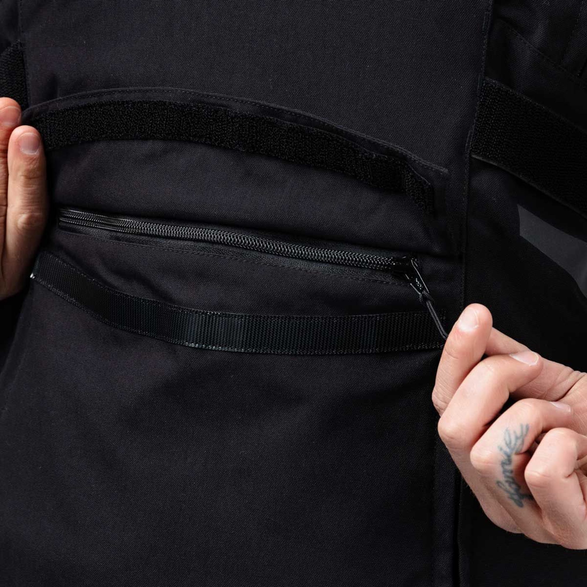 2 large internal stow pockets, 1 waterproof internal chest pocket.