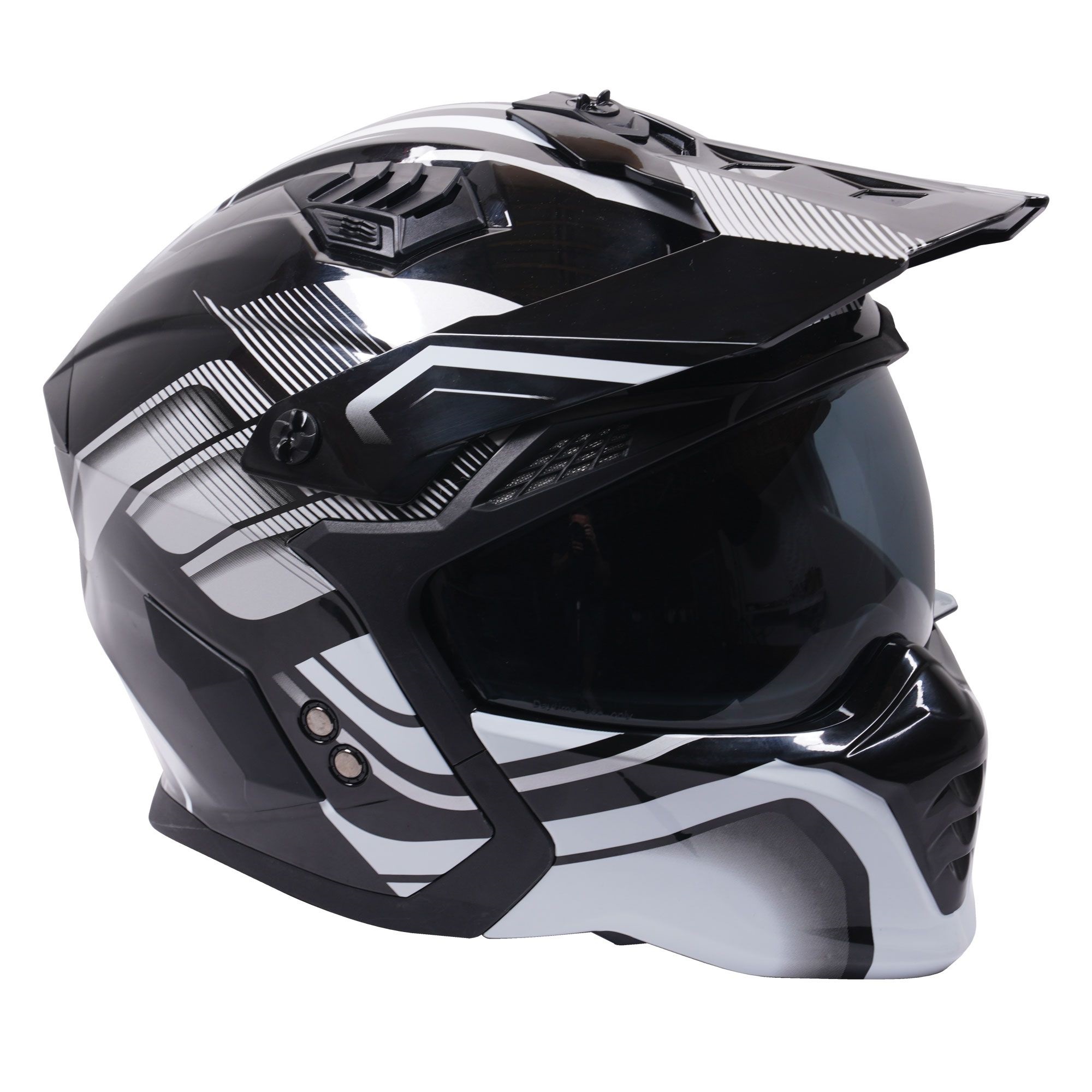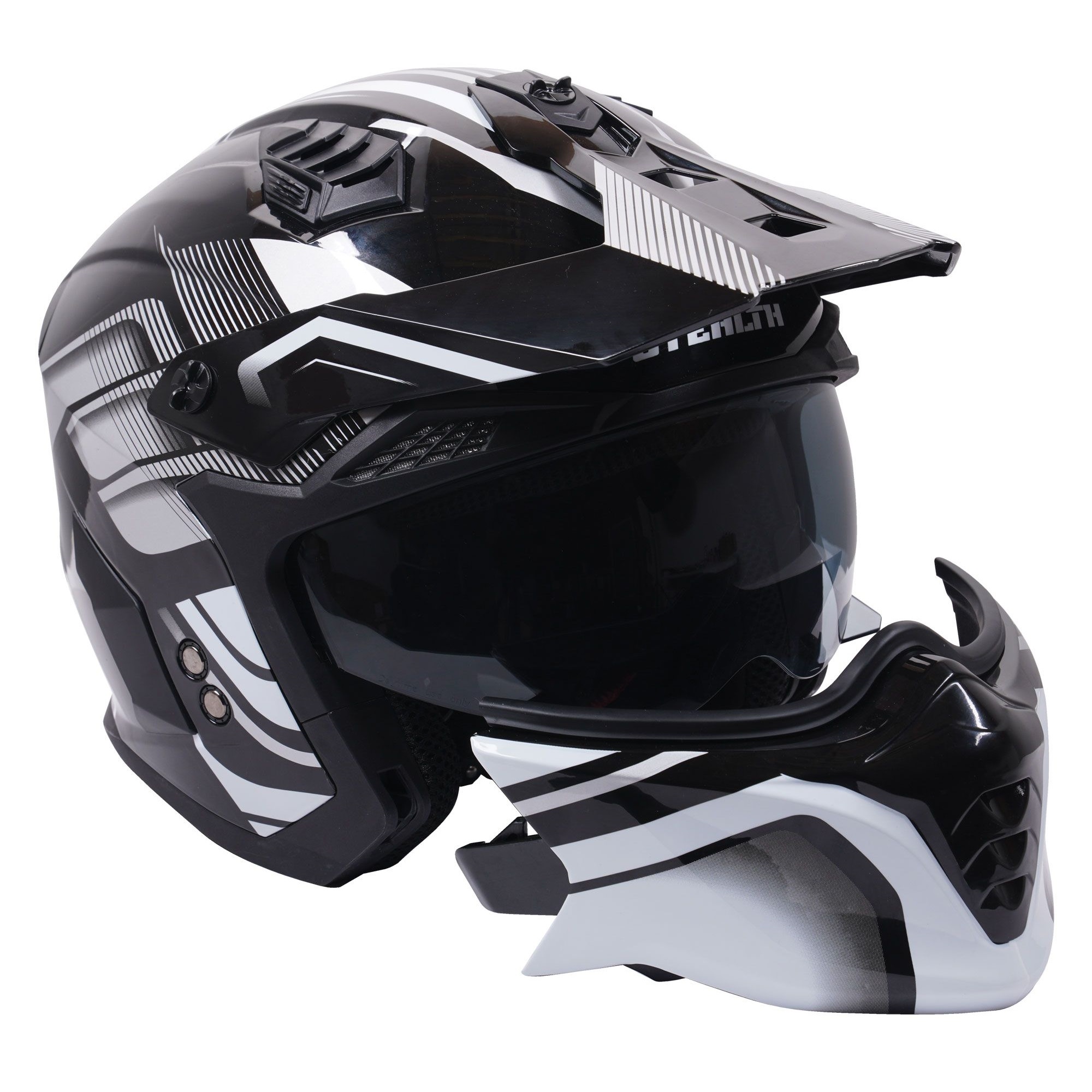The Stealth Fighter dual sport motorcycle helmet is a great choice for adventure, enduro and road riders looking for the best of both worlds. The convertible motorbike helmet has a removable chin bar.