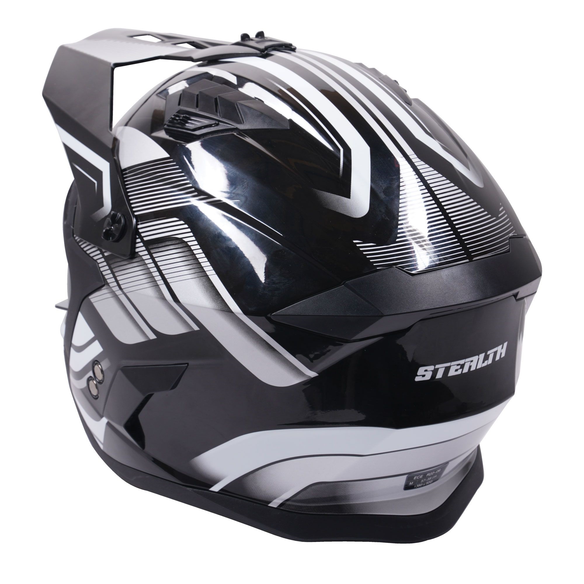 The Stealth Fighter Orbit dual sport motorcycle helmet is a great choice for adventure, enduro and road riders looking for the best of both worlds. The convertible motorbike helmet has a removable chin bar, allowing you to tackle any off-road trials ride and then ride home without having to change helmet. The motorbike helmet comes with a drop down sun visor and the new and improved safety standard of ECE 22.06. Packed with features that help improve your riding experience. Available in a range of colours to match any riders gear, bike and personal taste!