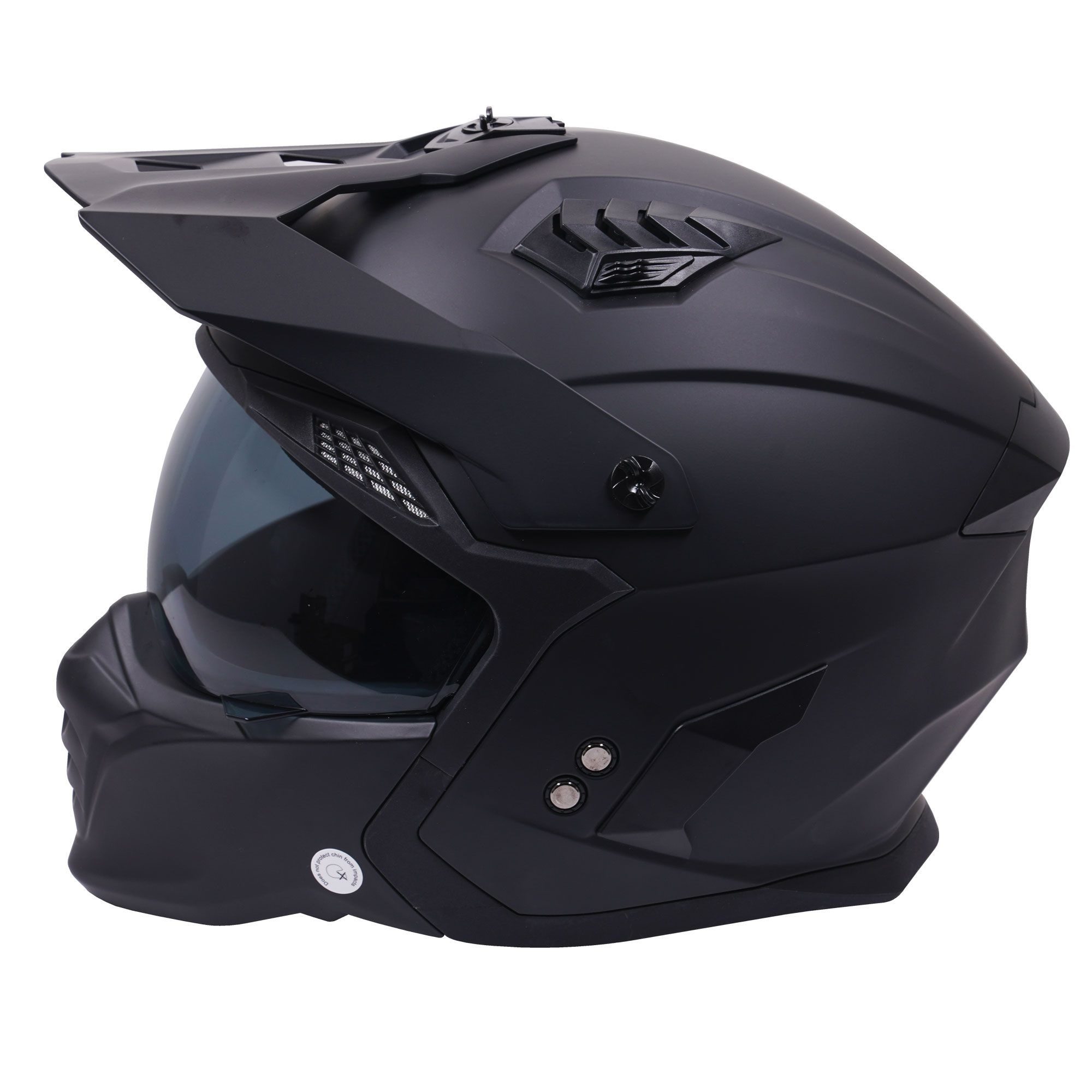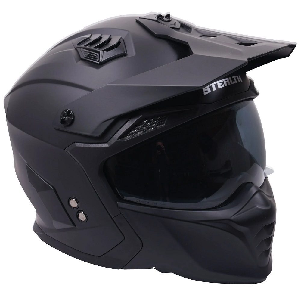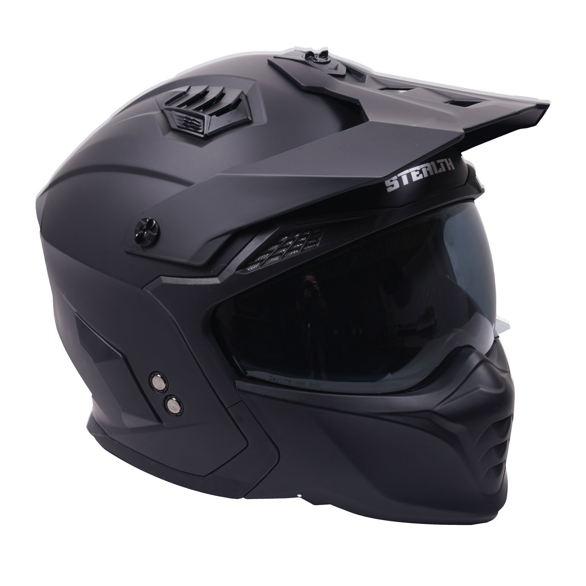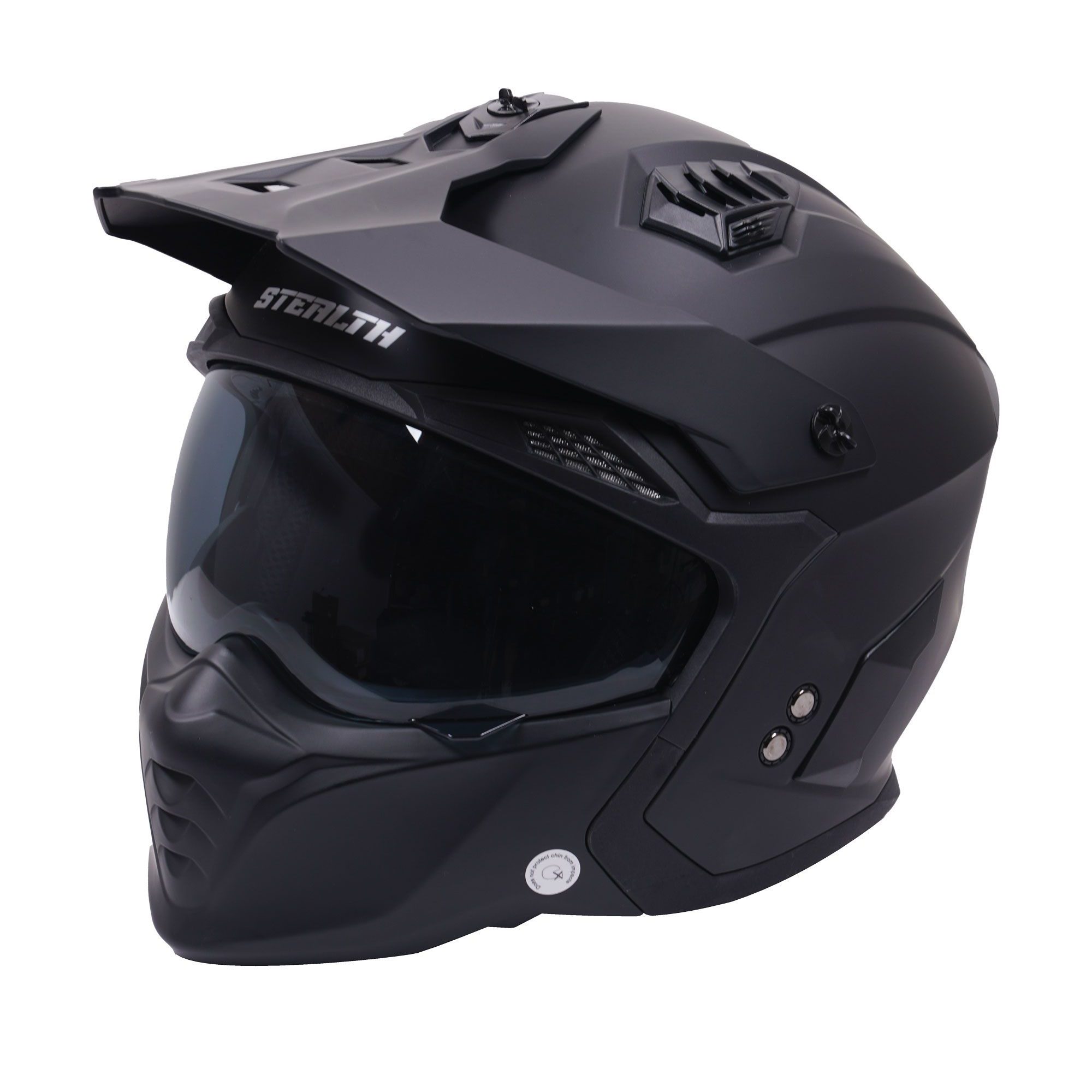 The Stealth Fighter dual sport motorcycle helmet is a great choice for adventure, enduro and road riders looking for the best of both worlds. The convertible motorbike helmet has a removable chin bar.