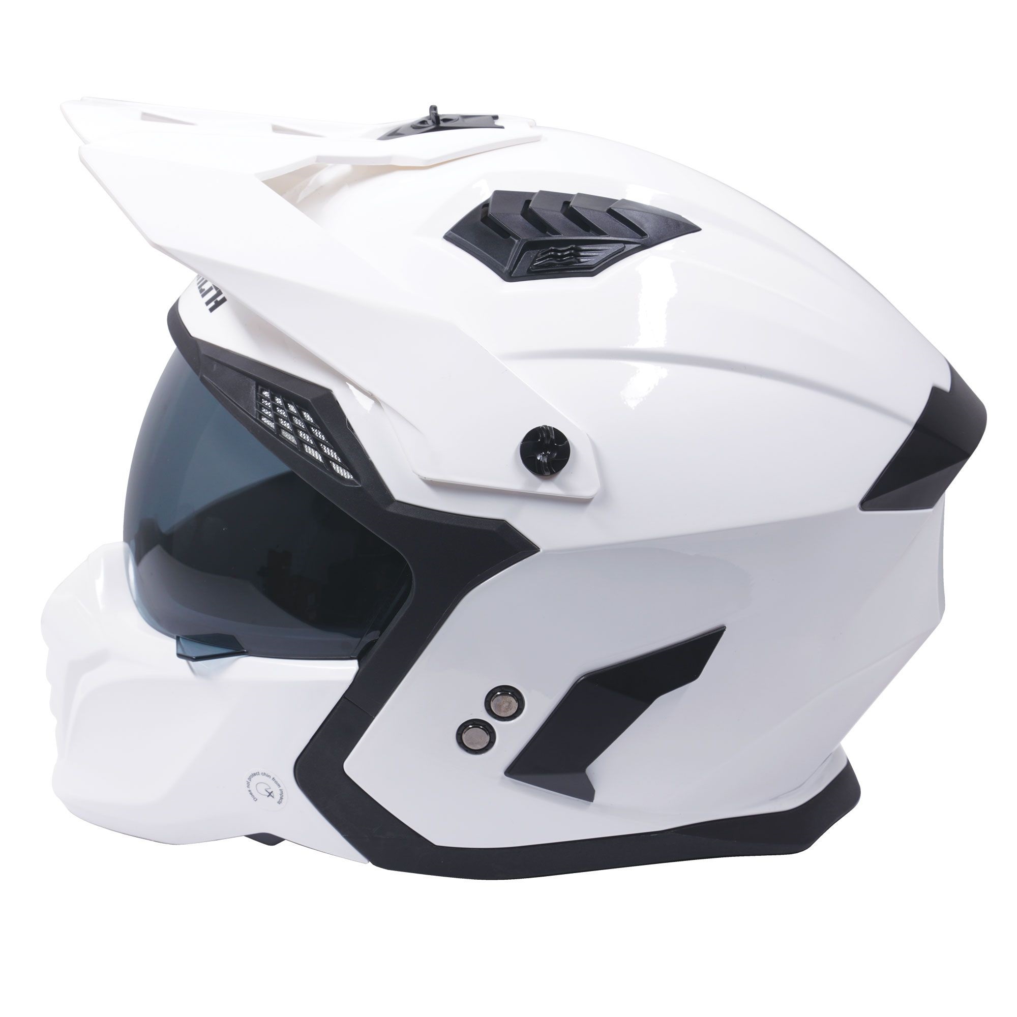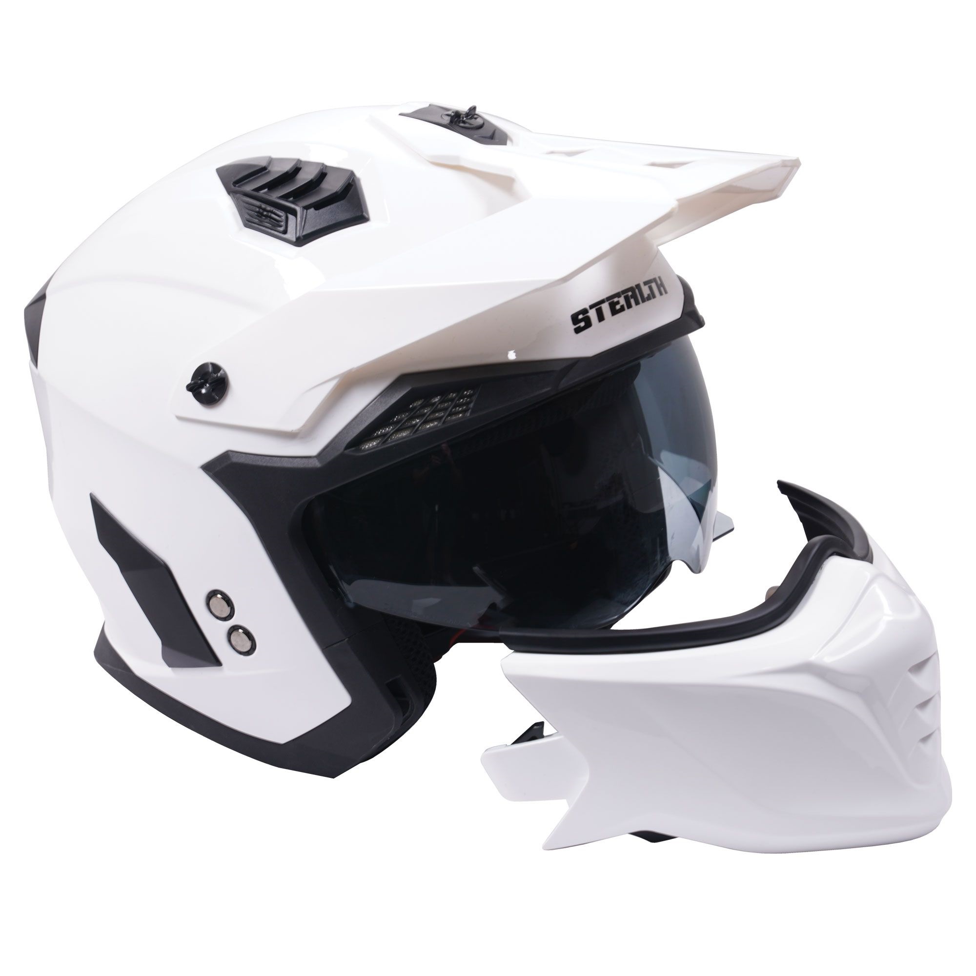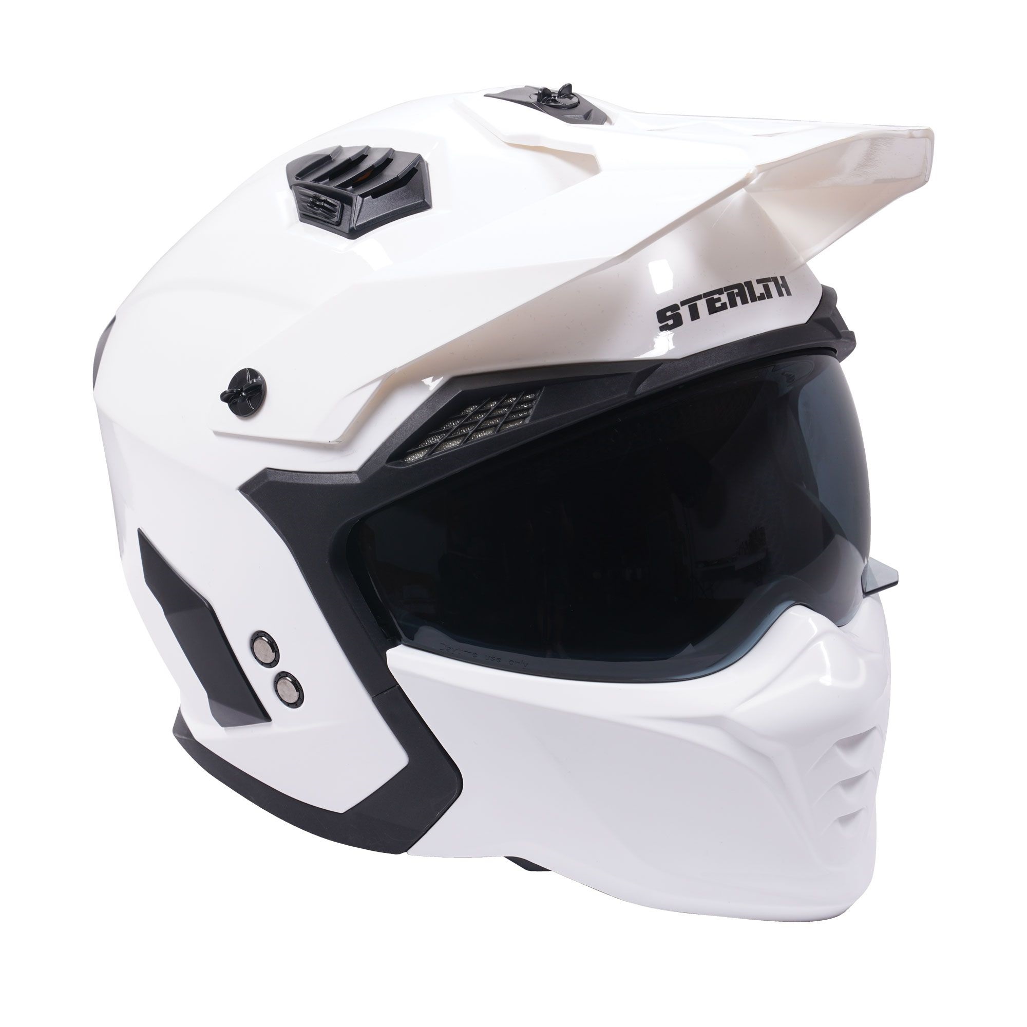 The Stealth Fighter dual sport motorcycle helmet is a great choice for adventure, enduro and road riders looking for the best of both worlds. The convertible motorbike helmet has a removable chin bar.