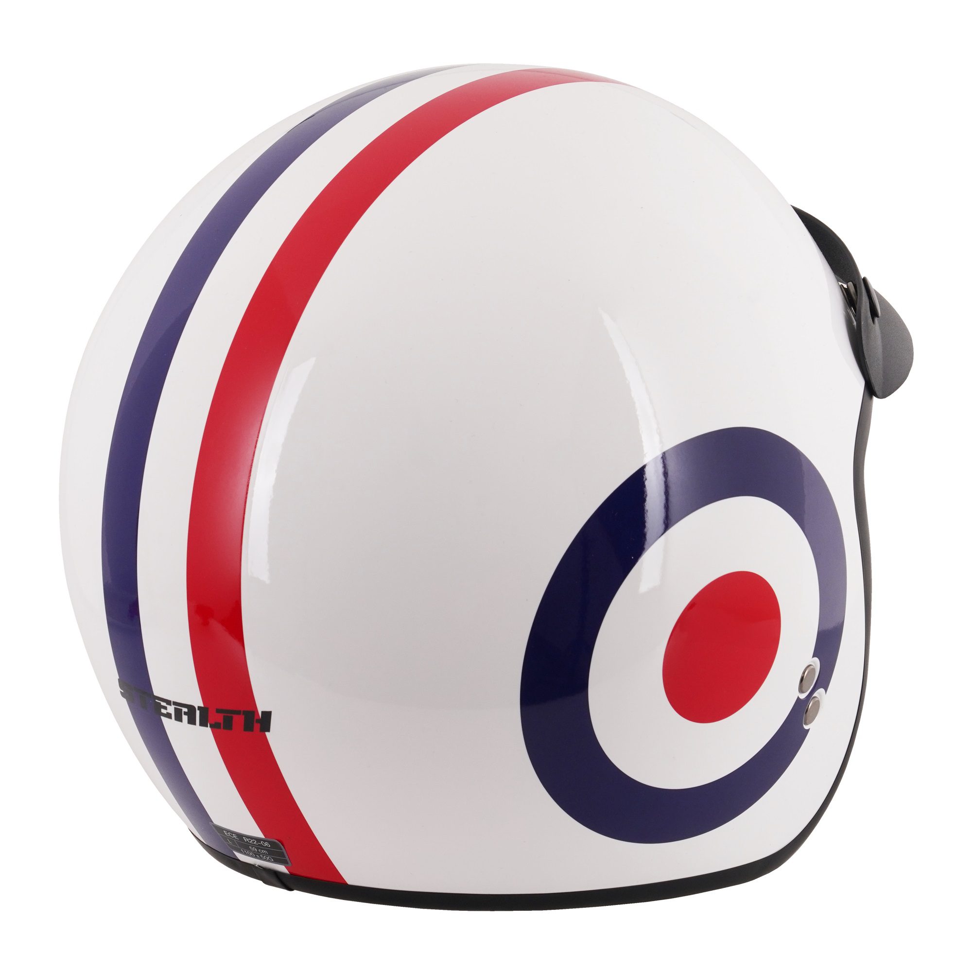 The Stealth HS391 Roundel open face scooter helmet is a great choice for riders looking to capture retro vibes without compromising on modern technology and safety. An inner sun visor offers versatility for a variety of weather conditions and riding styles, while a comfort lining delivers an excellent riding experience. Available in a range of colours and designs to match any riders gear, bike and personal taste!