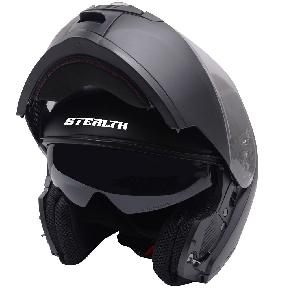 The Stealth V159 Plain motorcycle helmet is a great choice for riders on a budget looking for a flip-up riding helmet. Don’t let the price fool you however, as the helmet is P/J rated and comes with the new ECE 22.06 motorbike helmet safety certification.