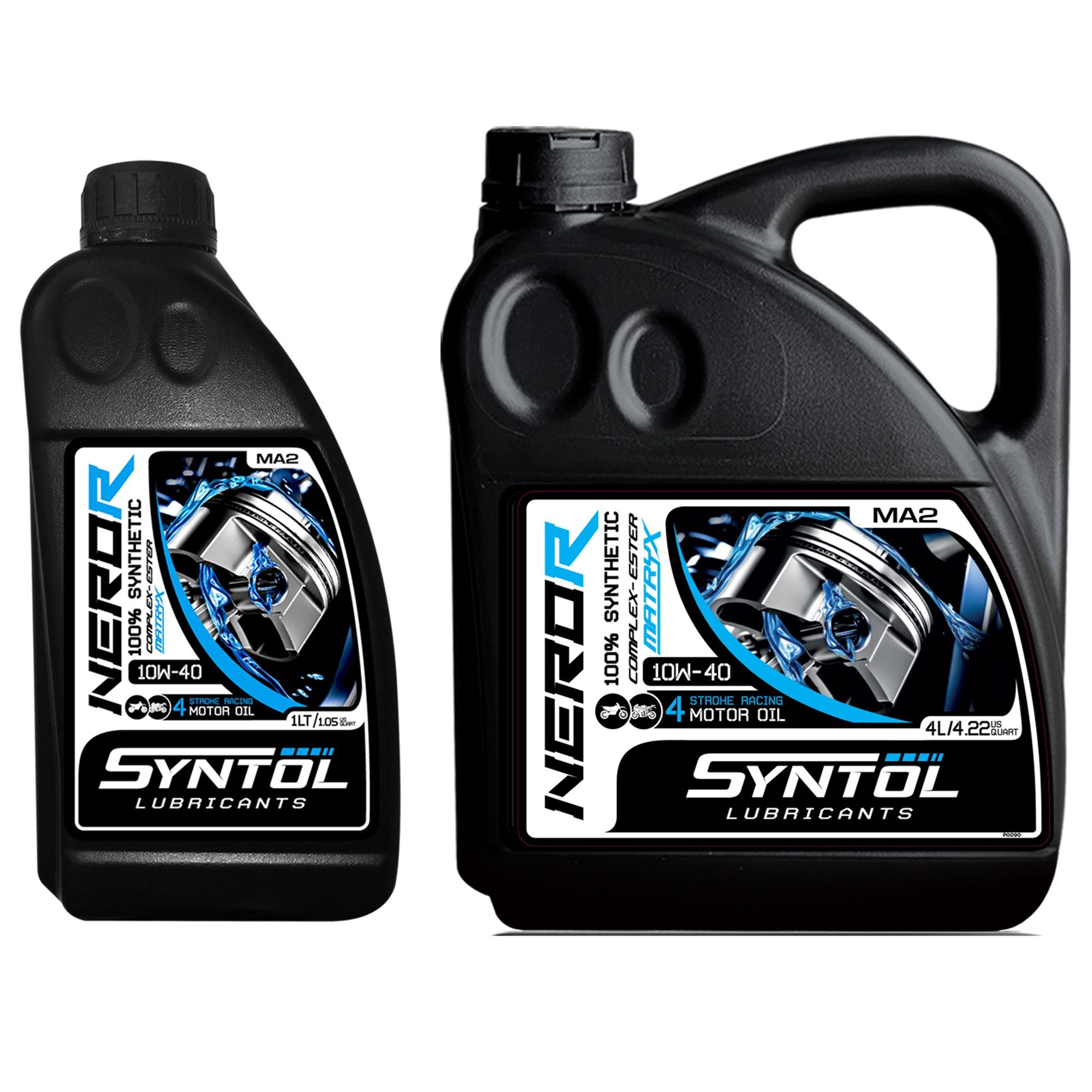The Syntol Nero-R 4T 5W-30 racing motorcycle oil is an ultra high performance 100% synthetic Ester 4 stroke racing motorbike oil. Proprietary complex-Ester matryx® technology, along with innovative additive chemistry guarantees maximum engine power without any compromise on component wear or engine reliability.