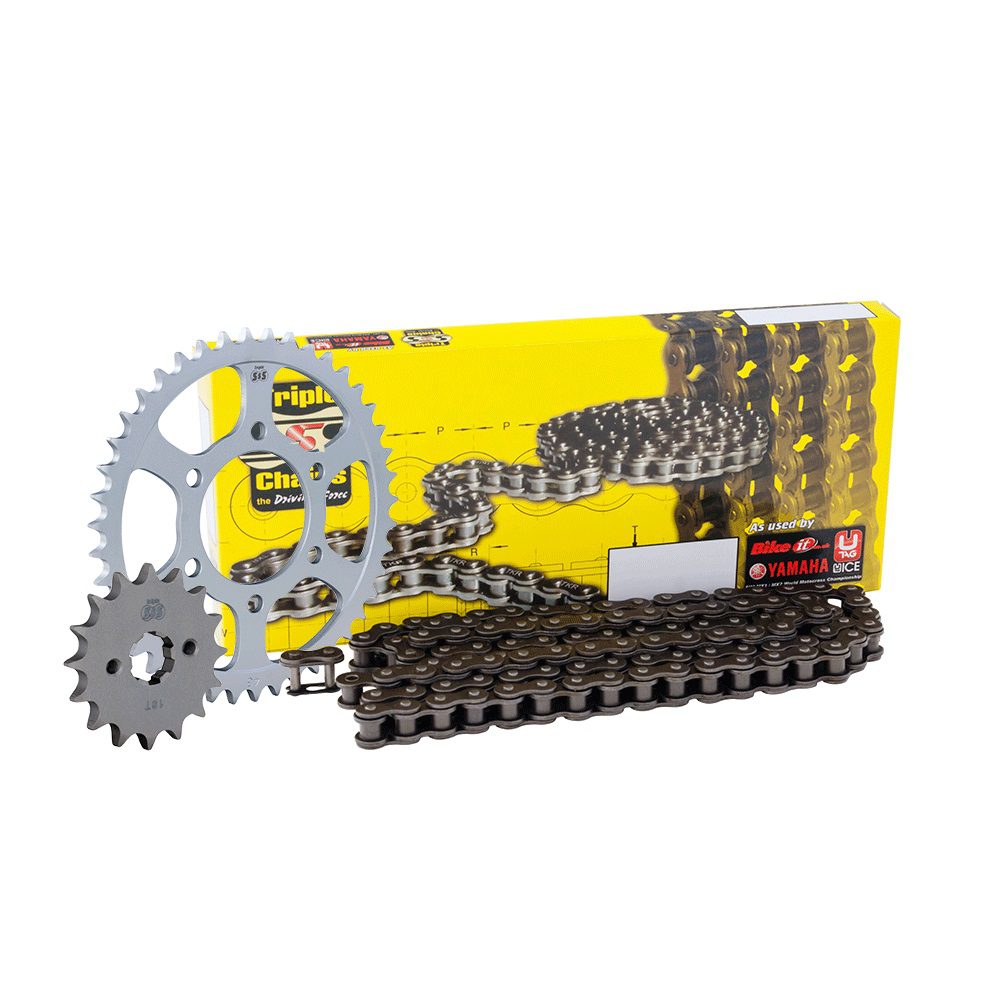 Looking to replace your old and tired motorcycle chain and sprockets? Look no further than the winning combination of the Triple-S chain and sprockets. The Triple-S Yamaha YBR 125 05-06 motorbike chain and sprocket kit is compatible with the models listed below. Each kit contains one front and one rear sprocket, as well as the corresponding chain type. The fitment guide uses the manufacturers recommended chain grade, upgrade chain kits may also be available. Triple-S chain warranty covers either 12 months or 5000 miles, whichever comes first. Use on track days will invalidate any warranty.
