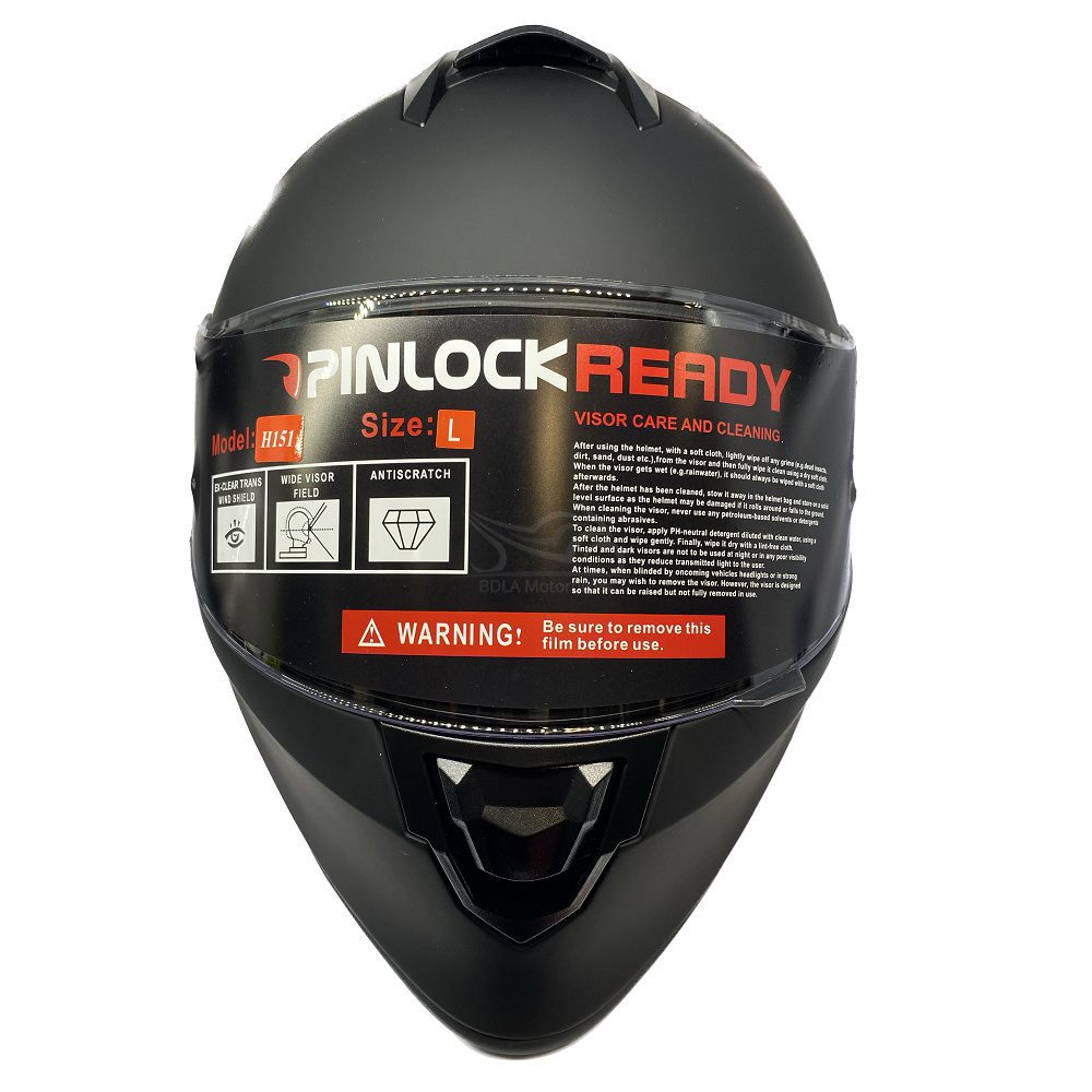 If it’s a helmet, the Pinlock Insert is not fitted (unless fitted as standard during the manufacturing process). The visor film should also remain on the helmet.