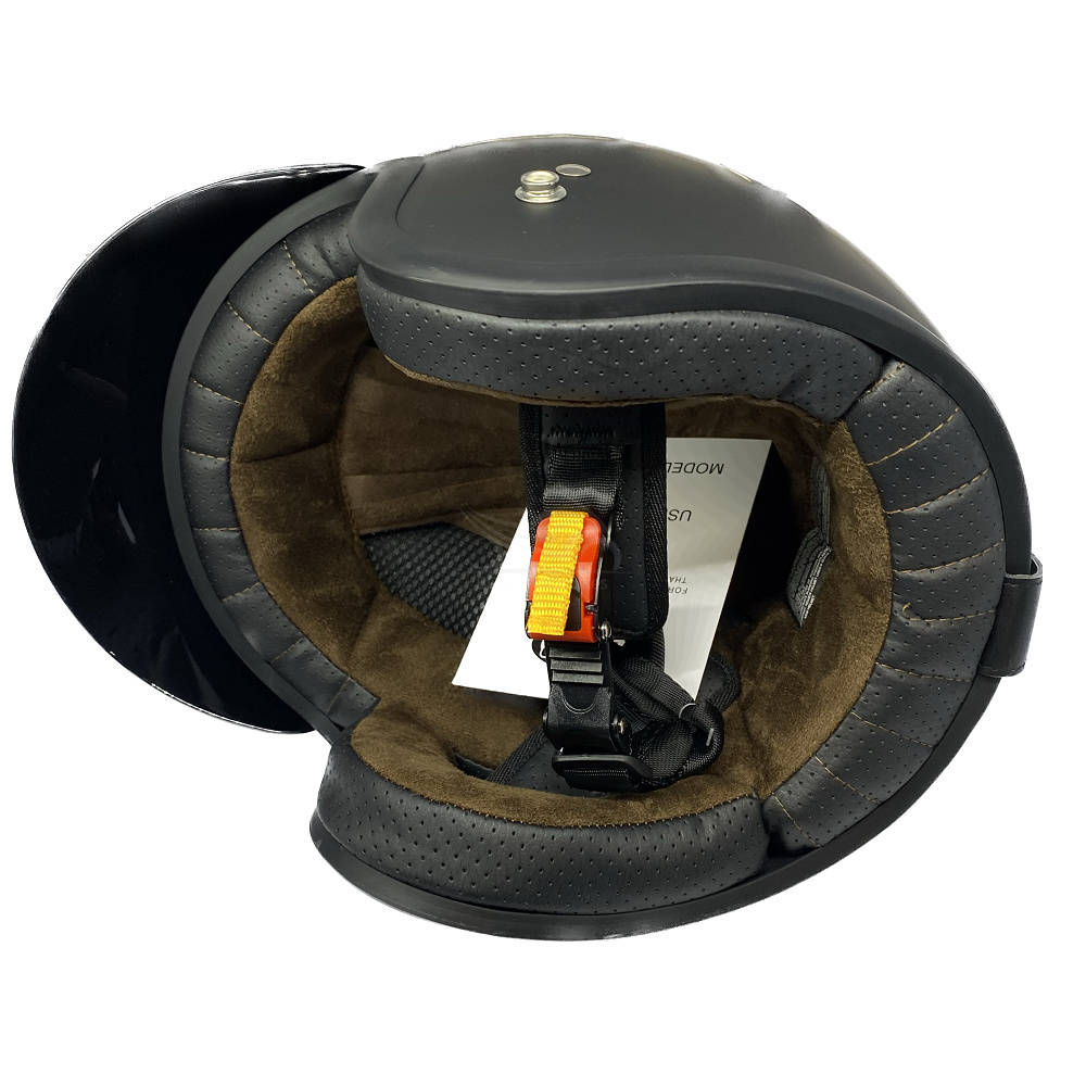 The Vcan H541 slim plain open face motorcycle helmet is perfect for riders looking to revert back to the basics! The Vcan jet helmet is presented with a complete matt black finish, no logos are found on the helmet for riders looking for the sleek design this offers. A luxury faux suede comfort lining is a treat to your skin, while a removable peak and goggle retention strap offers versatility to an excellent scooter helmet.