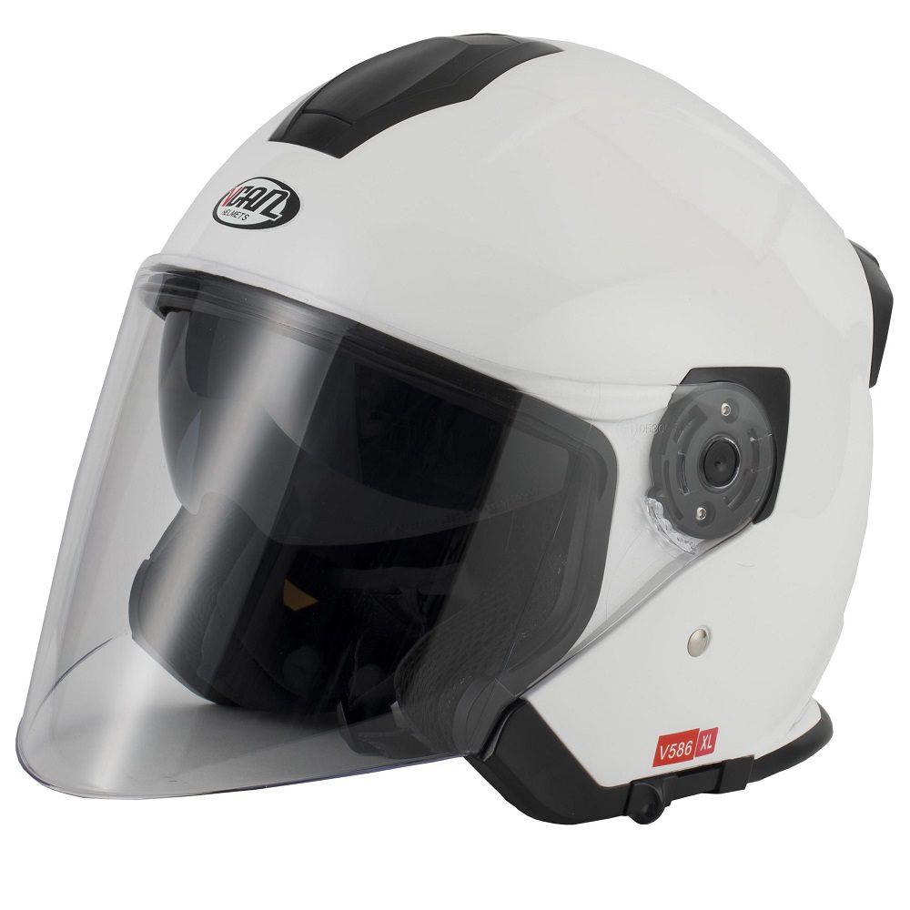 The Vcan H586 open face motorcycle helmet is perfect for city riders looking for freedom while also protecting their face from the wind! An anti-scratch anti-visor paired with an inner drop down sun visor provides plenty of versatility for a variety of riding styles and needs.