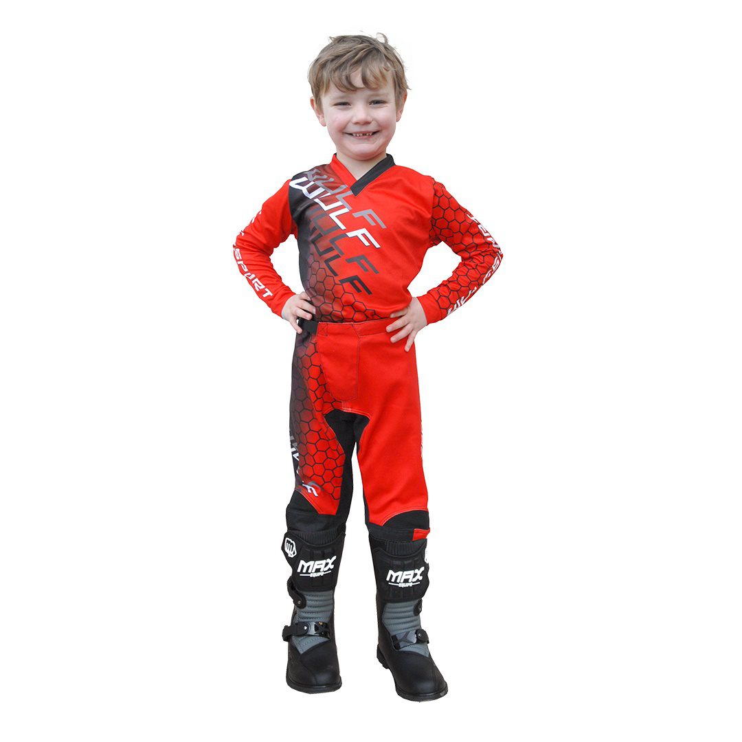 The Wulfsport Cub Connect motocross trousers are great for junior riders looking to tackle their next adventure in style. The kids off-road bottoms are constructed with hard wearing 2-way stretch and ribbed panels, which delivers extra mobility, comfort and an improved fit. An adjustable snap buckle closure, pre-shaped knees and multiple stretch panels provide a comfortable ride no matter the riding position. Fade free sublimation graphics are adorned across the motocross shirt also, meaning that you’ll get plenty of use out of your new riding partner. Available in a range of colours to match any riders gear, bike and personal taste!